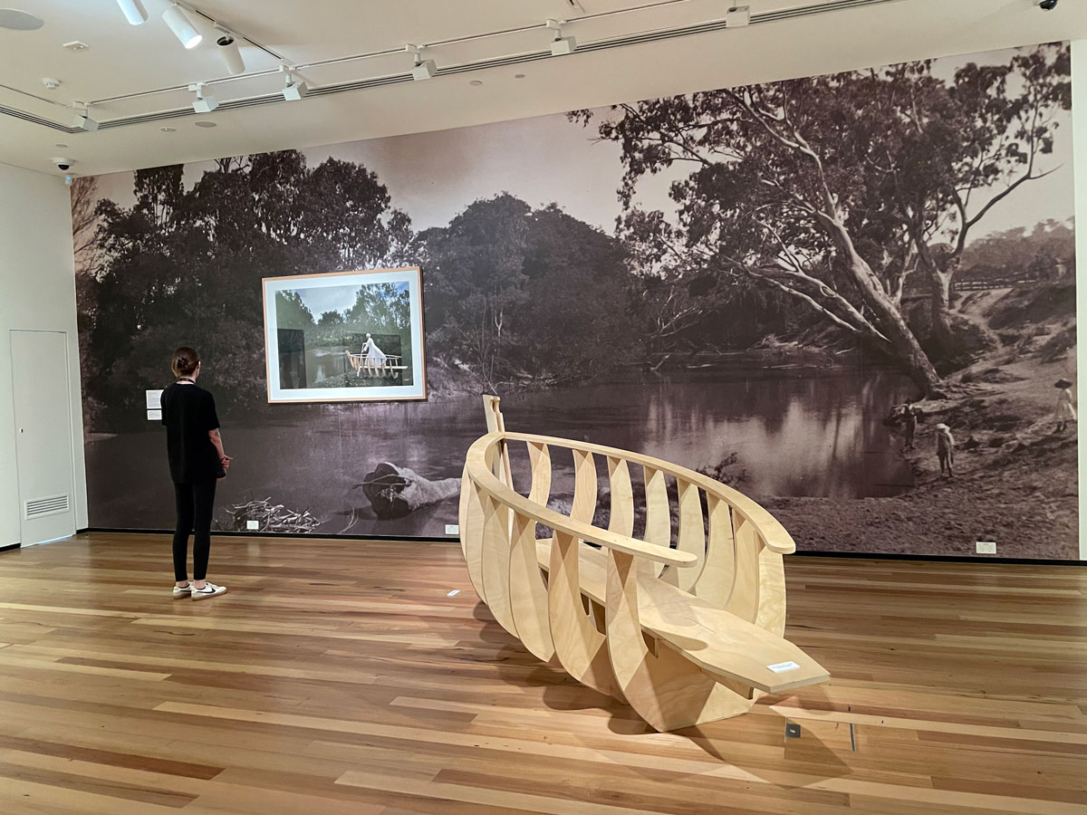Whose Paradise? by Jill Orr presents a meditation on the idea of progress, weaving contemporary vision into the fabric of history. Her photographs are placed in conversation with Heidelberg School paintings (also on display), creating a layered narrative where past ideals and current interests converge.