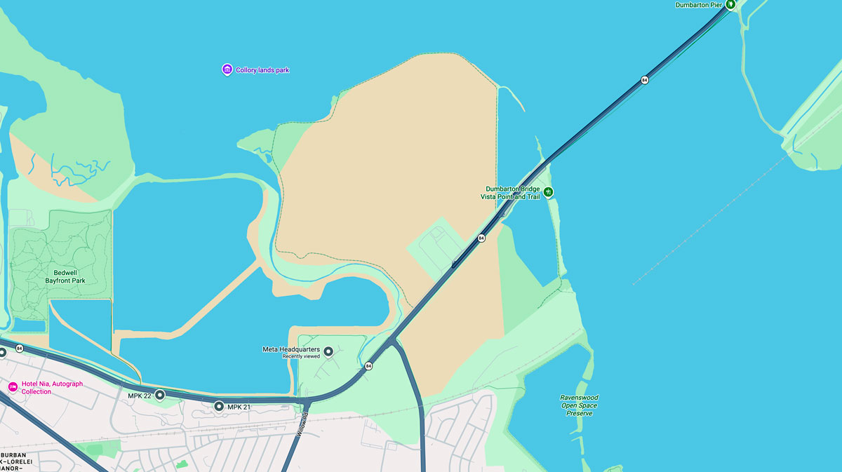 Fun Fact: While looking up something else, I noticed a side bar image of the Meta (Facebook) headquarters. This is in Menlo Park California. Then I noticed the background and that the vast complex was almost at sea level.