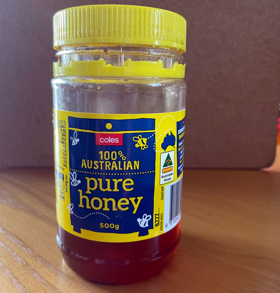 I did try this other one from Coles. It was very ordinary and had very little real honey taste (rating about 2 out of ten). The bottle with its remaining contents was thrown out after this photograph.